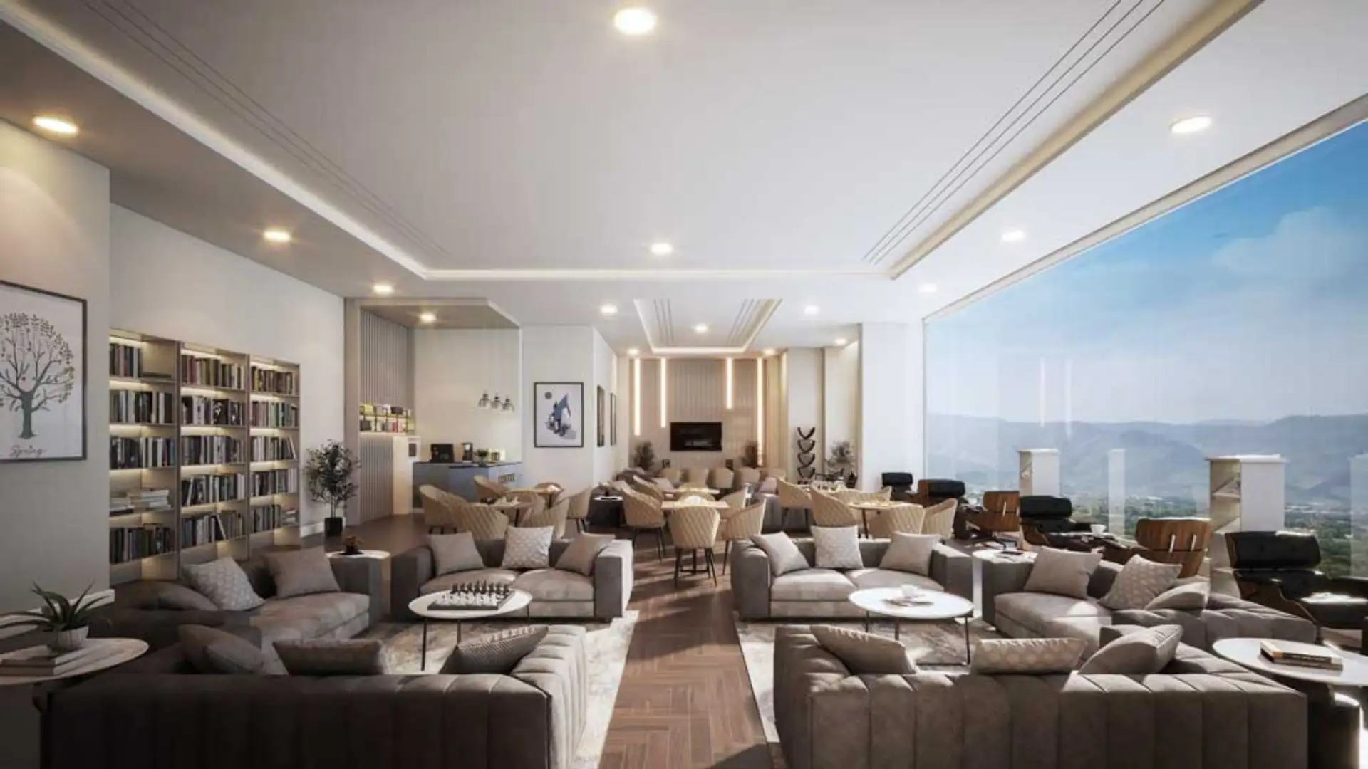 ⦁ Spacious club-like hall with generously sized glass windows that provides picturesque views of Margalla Hills at a height of 60ft